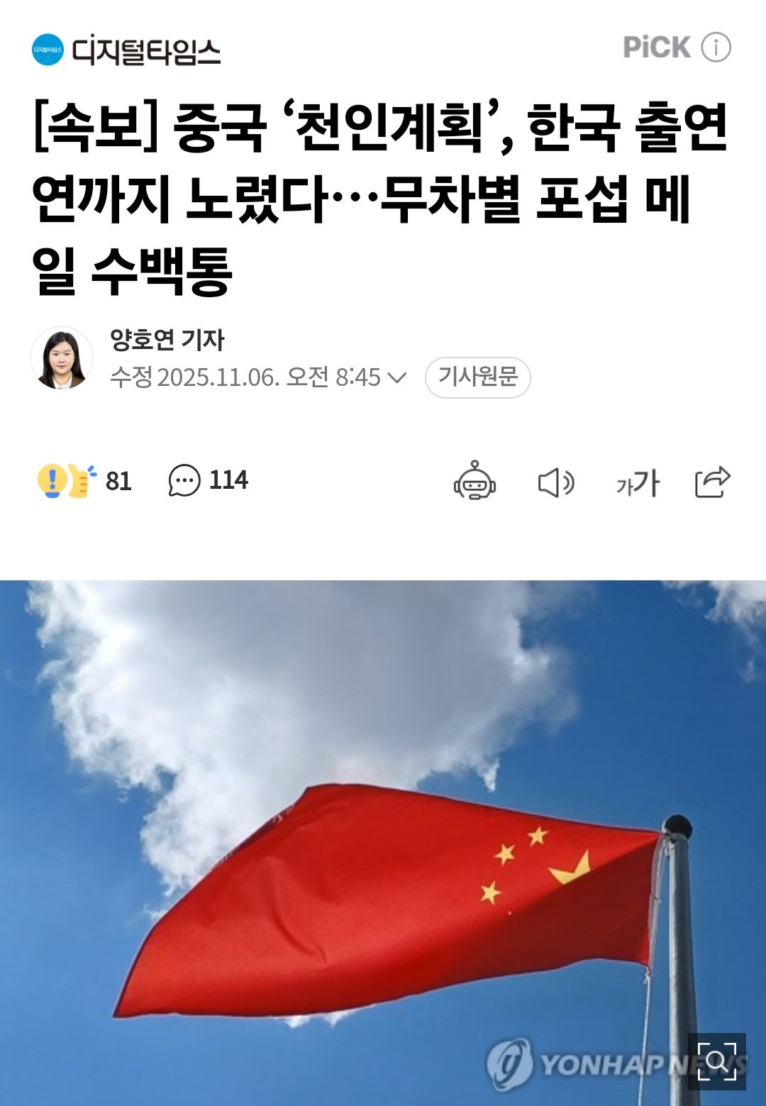 [속보] 중국 ‘천인계획’, 한국 출연연까지 노렸다…무차별 포섭 메일 수백통