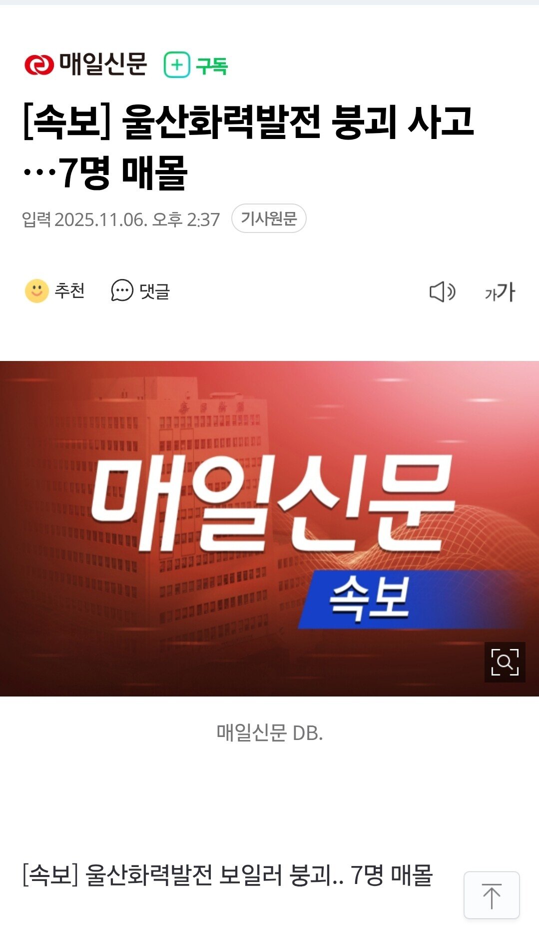 [속보] 울산화력발전 보일러 붕괴로 7명 매몰