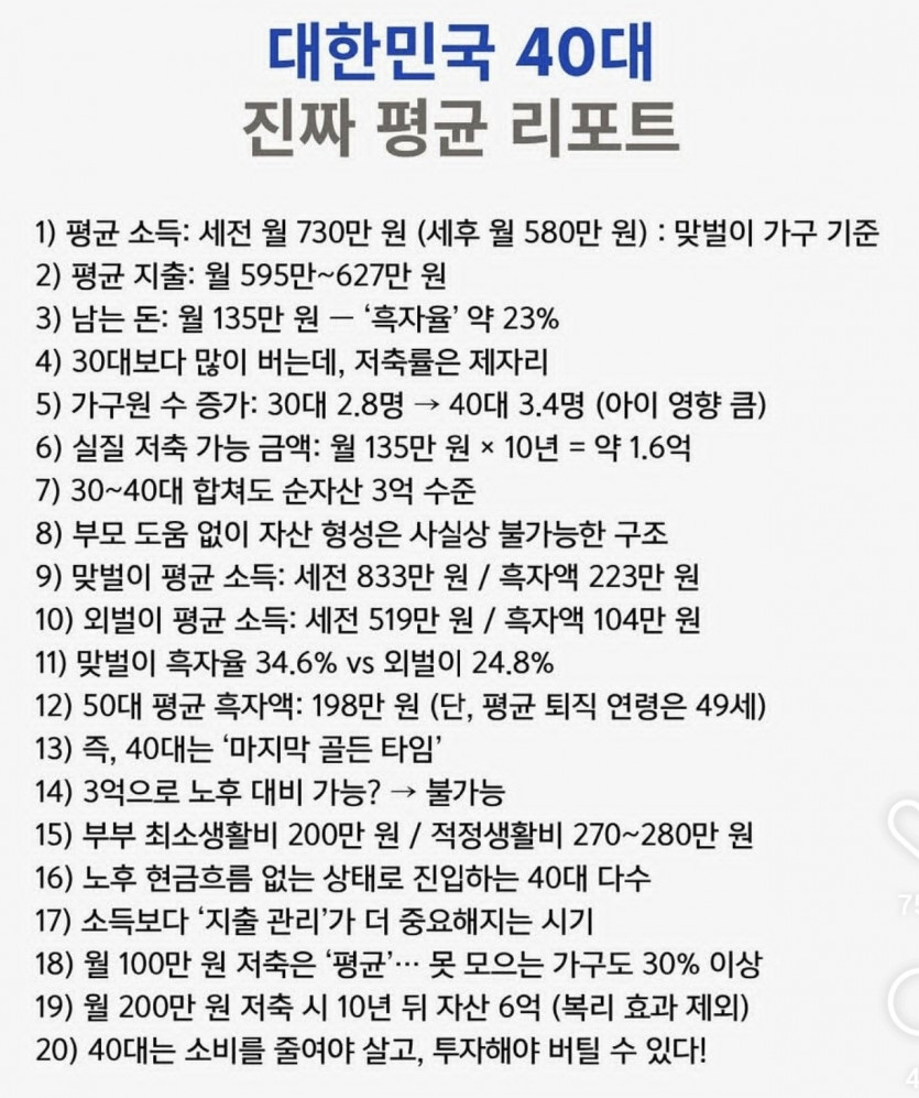 대한민국 40대 평균
