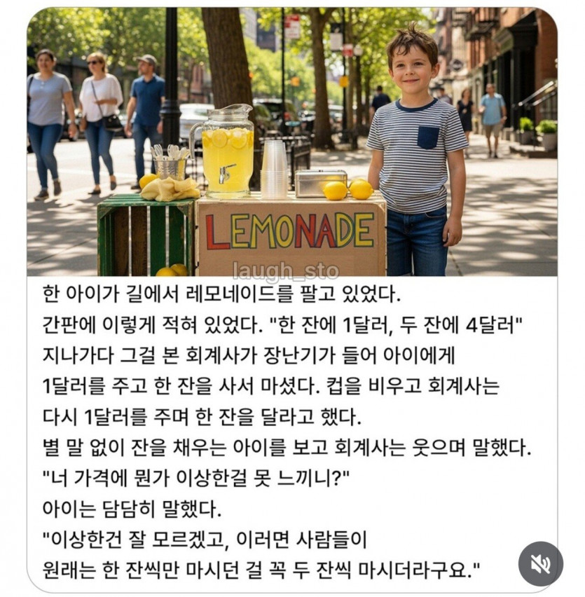 한 잔에 1달러 두 잔에 4달러