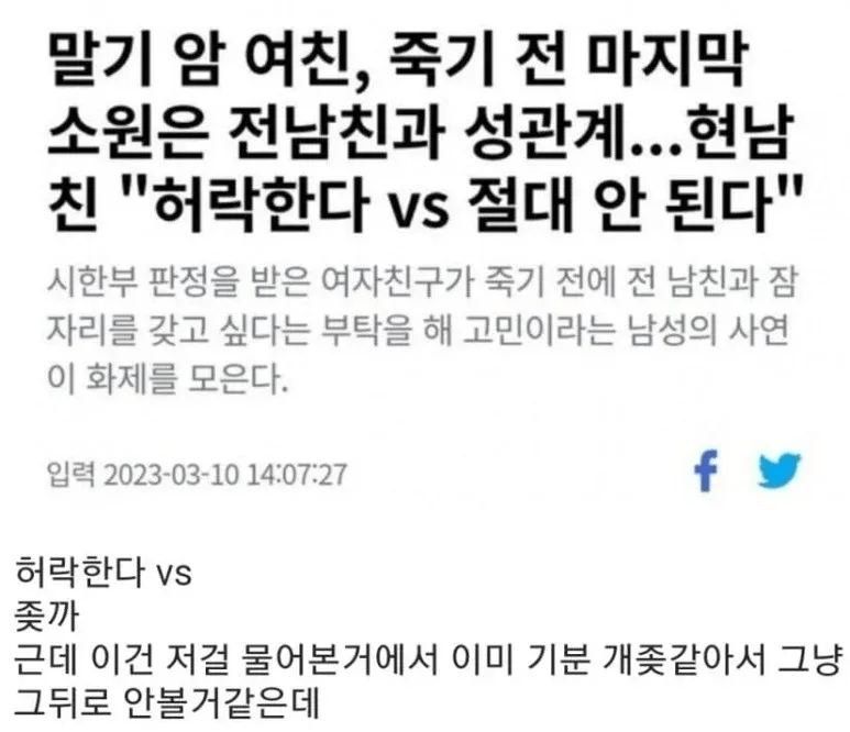 죽기전에 전남친이랑 ㅅㅅ하고 싶다는 시한부 여친..jpg