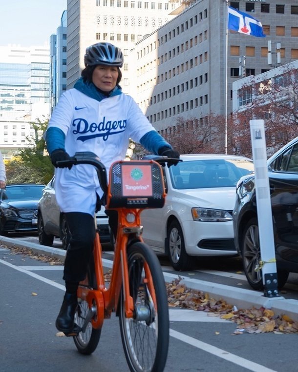 다저스 유니폼 입고 자전거 타는 토론토 시장 ㅋㅋㅋ