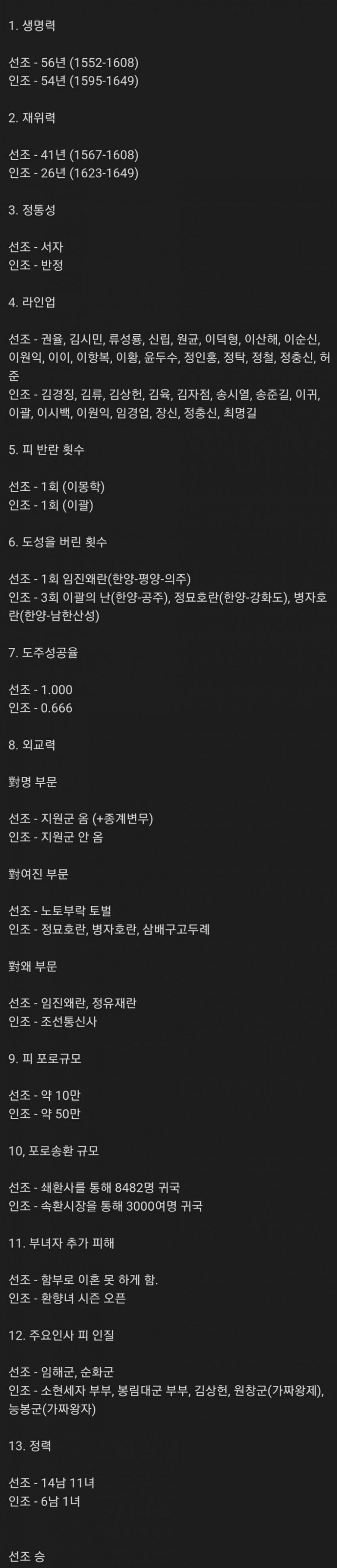 선조 vs 인조 비교 ㅎㄷㄷㄷ