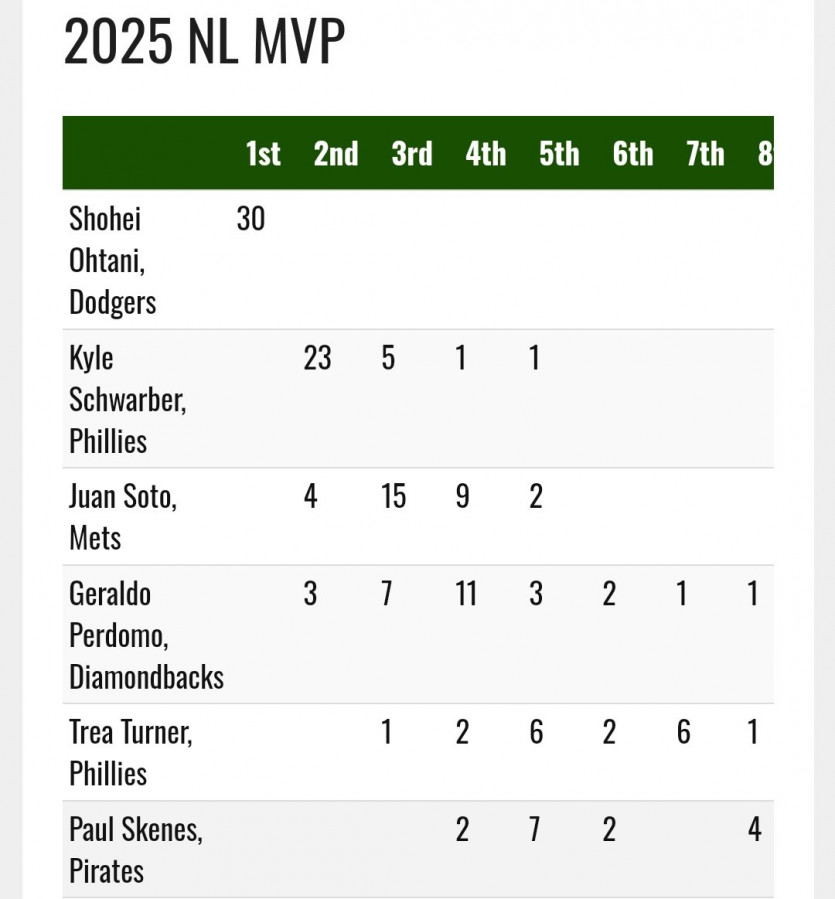 오타니 쇼헤이 2025 NL MVP 만장일치