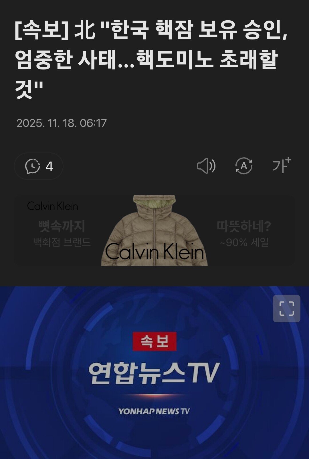 속보] 北 "한국 핵잠 보유 승인, 엄중한 사태…핵도미노 초래할 것"