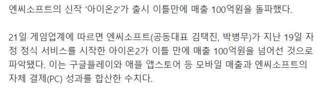 [단독] 엔씨소프트 '아이온2', 이틀 만에 매출 100억원 돌파