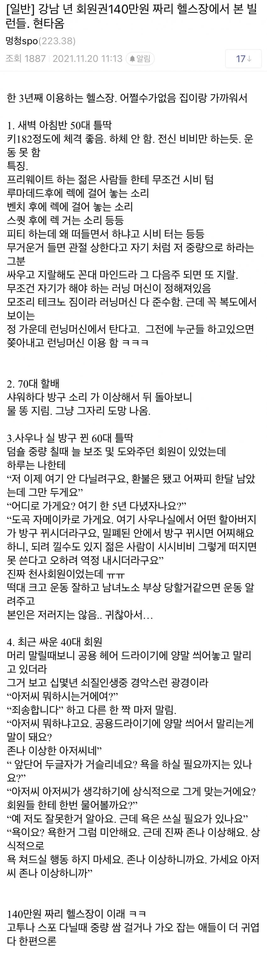 비싼 헬스장 빌런들 ㄷㄷ