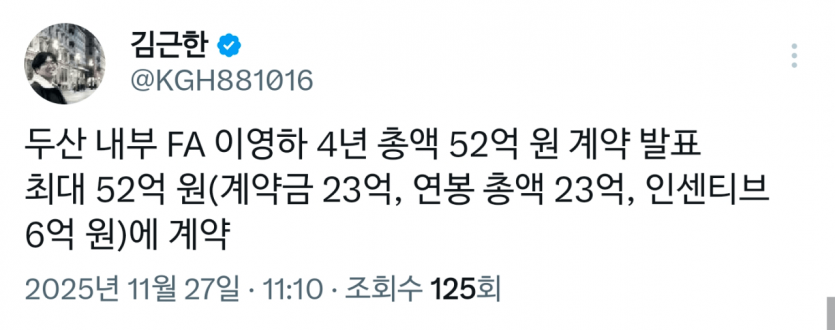 [오피셜] 이영하 두산 잔류 4년 52억(보장 46억)