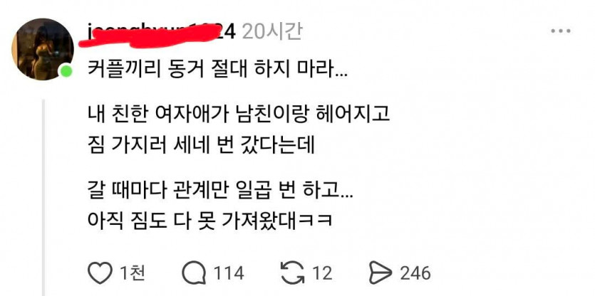커플끼리 동거 절대 하지 마라...