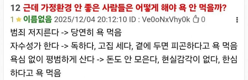가정환경 안 좋으면 뭘해도 욕 먹는다는 글