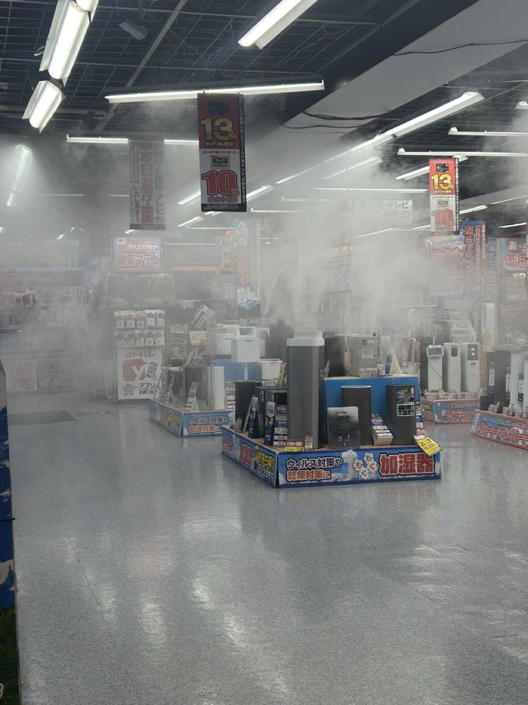 일본의 마트 가습기 코너의 모습