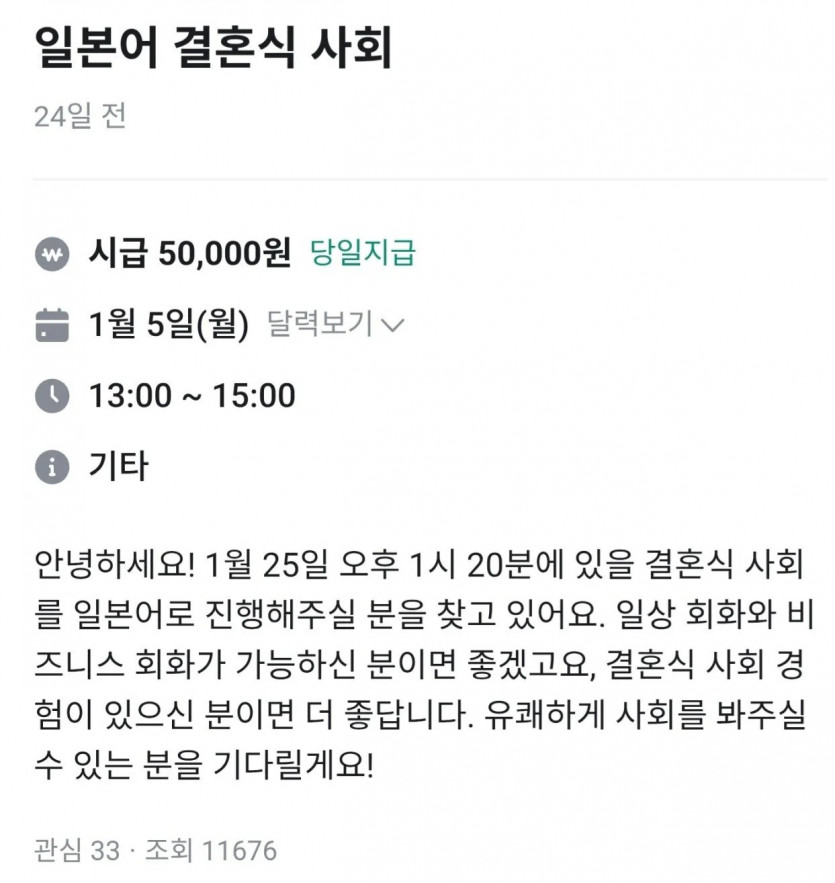 당근알바 결혼식사회 근황