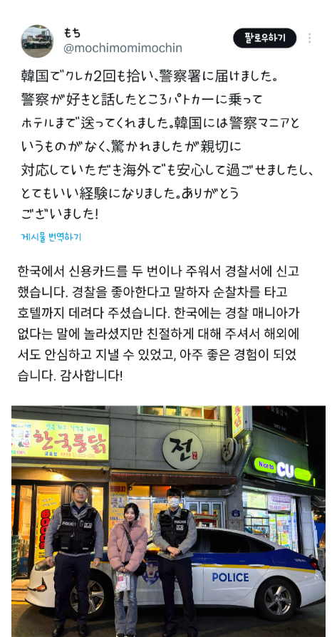 한국 경찰 인증샷 찍은 일본녀