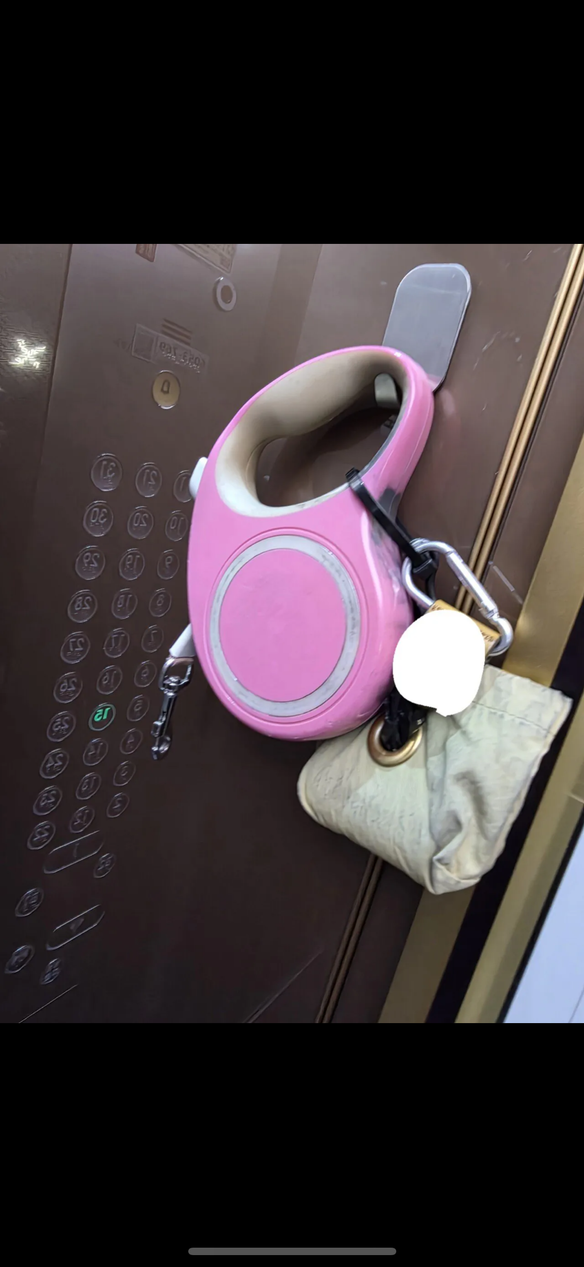아파트 엘레베이터에다가 지 개 목줄을 걸어놓네