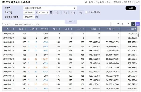 SK 하이닉스 22년전 주가 ㄷㄷㄷ