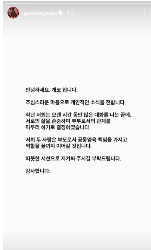 '다이나믹듀오' 개코 이혼 발표 ㄷㄷ