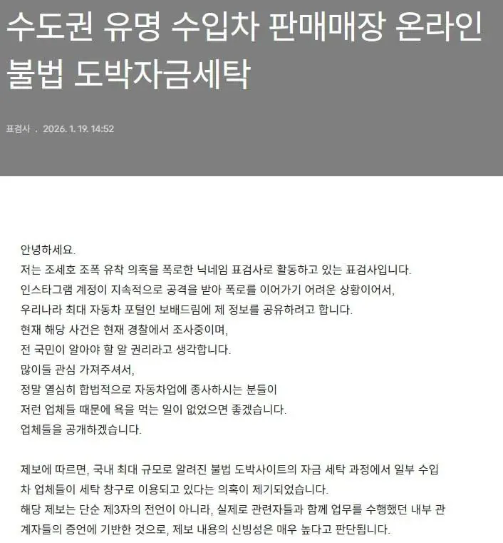 슈퍼카 관련 유명 업체들 불법 도박자금 세탁에 연루 의혹