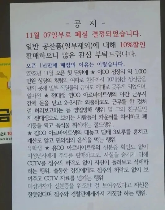 편의점 오픈 1년만에 폐점