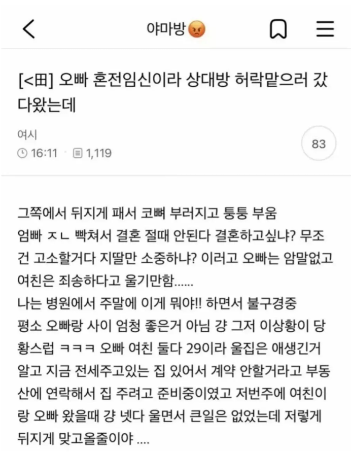 오빠 혼전임신이라 상대방 허락받으러갔는데 코뼈 부러짐.jpg